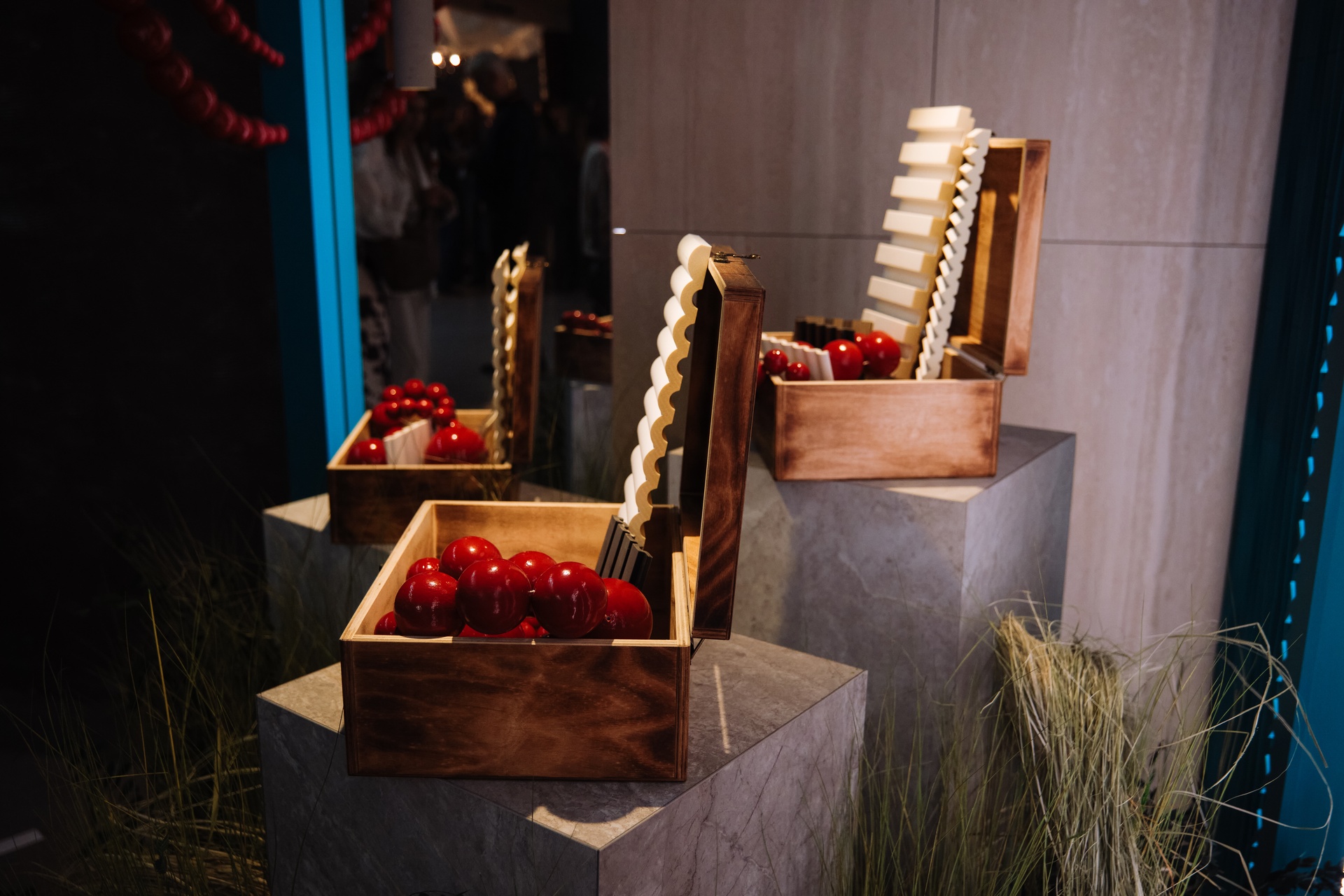 Стенд будто бы переносил гостей в старинную русскую сказку, с резными узорами, яркими красными бусами, и волшебными ларцами с сокровищами. Концепция была в максимальном использовании продукции бренда, таким образом попадая на стенд гости сразу оказывались в самом центре выставочной экспозиции.